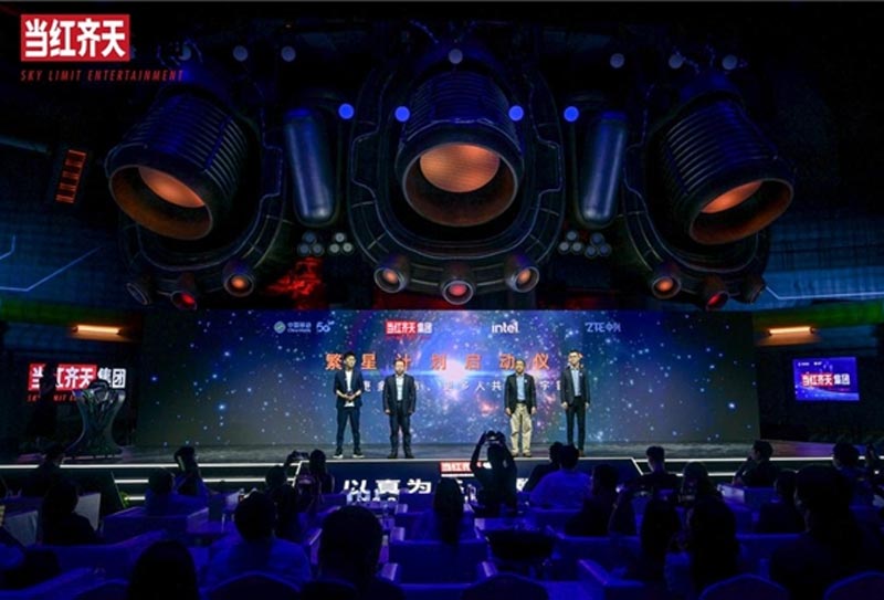 當紅齊天“5G XR繁星計劃”與VR電子競技國際大賽聯動發布。儀式由北京移動重要客戶中心副總經理楊浩源、中興通訊北京分公司CTO吳為、英特爾運營商事業部中國移動大客戶總監高志勇和當紅齊天集團電競事業部總監楊曉帥一同啟動。